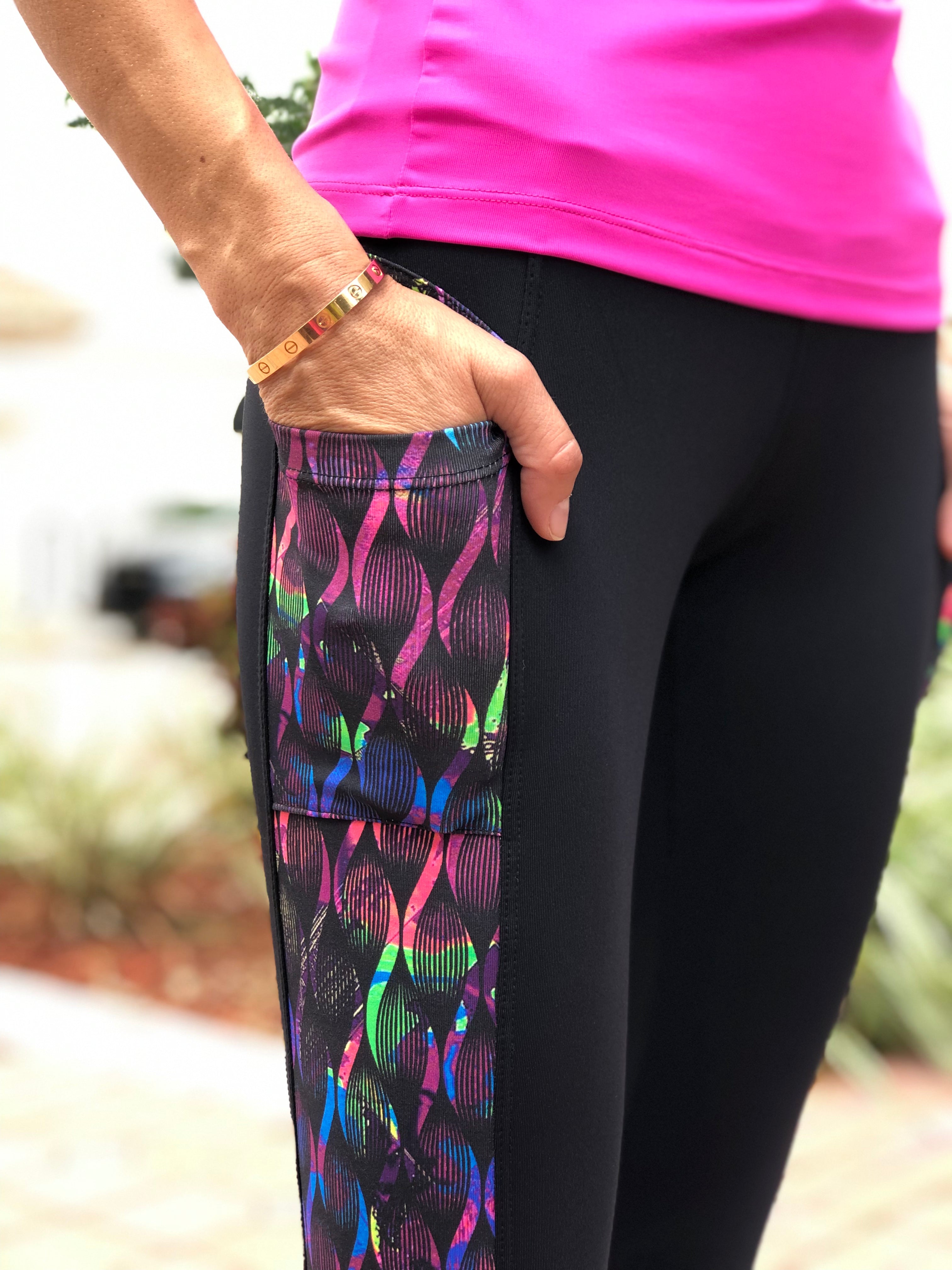Bluefish Sport has combined high-performance, silky Microtouch with Designer Print panels for superior comfort. The print panels are finished with decorative, shapely seams running from the 3” waistband to the bottom of the leg, front and back. The Flow Capri is a must-have for any activity. Fabric: Microtouch